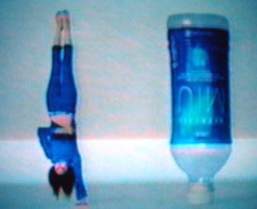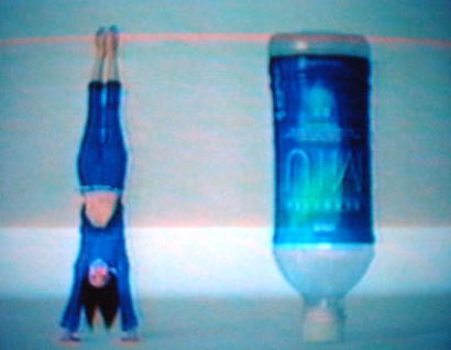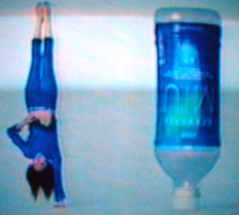 ●ダイドーMIUのCM 完全に逆さ吊りですね。片手で逆立ちなんかできるわけないし。でもどうやって吊るしているんだろう?。